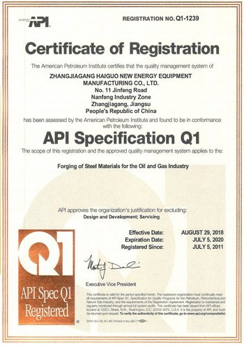 公司取得了美國ABS、法國BV、中國CCS、挪威DNVGL、韓國KR、英國LR、日本NK、意大利RINA等全球八大船級社的工廠認證證書,建立了完善的產(chǎn)品質(zhì)量管理體系。先后獲得了美國API20B資質(zhì)證書、API6A資質(zhì)證書、APIQ1體系證書、TPG的NDT認證證書、TPG 熱處理認證證書、歐盟PED等認證證書,同時也通過了一些國際客戶具有高度專業(yè)要求的資格認證。
